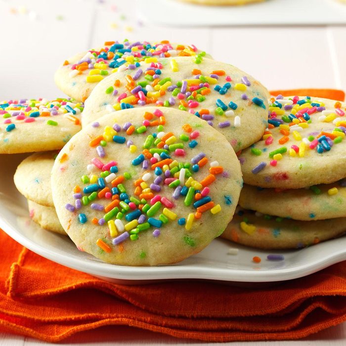 Mom and I took up cake decorating. Funfetti was our favorite cake, so we used the mix to make cutout cookies. Plain or decorated, they’re a fave at parties. —Danielle DeMarco, Basking Ridge, New Jersey