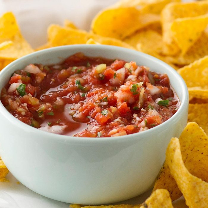 Preparing homemade salsa lets you alter the flavor to fit your palate. Whip this easy snack together and serve with fresh veggies or. my favorite, lime tortilla chips. —Amber Massey, Coppell, Texas