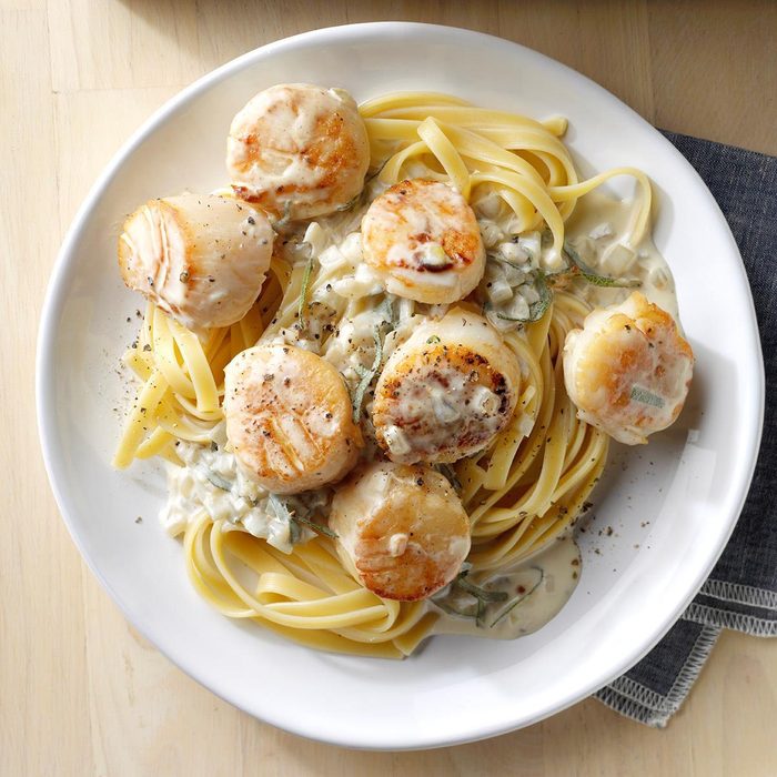 I wanted to show off the ocean freshness of the scallops I bought on the dock from a local fisherman, so I used basic ingredients to complement them. With sage and shallots, this is the best cream sauce for scallops I've found. —Joan Churchill, Dover, New Hampshire