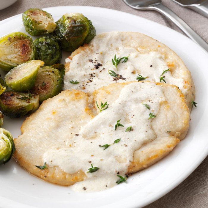 Nutrition Facts: 4 ounces cooked turkey with about 2 tablespoons sauce : 263 calories, 8g fat (2g saturated fat), 88mg cholesterol, 194mg sodium, 11g carbohydrate (2g sugars, 0 fiber), 34g protein. Diabetic Exchanges: 4 lean meat, 1 starch, 1 fat.