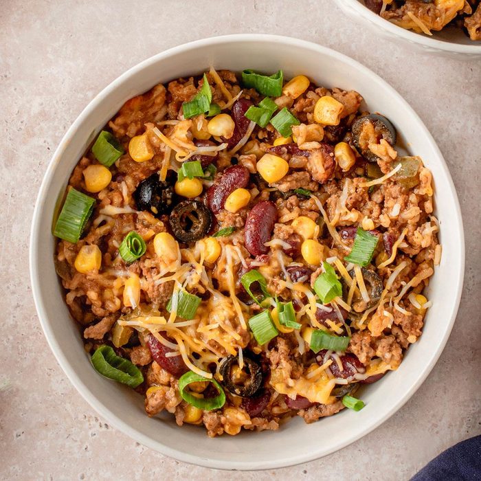 My mom gave me a fundraiser cookbook, and this is the recipe I’ve used most. My whole family is on board. For toppings, think sour cream, tomatoes, jalapeno and red onion. —Judy Hughes, Waverly, Kansas