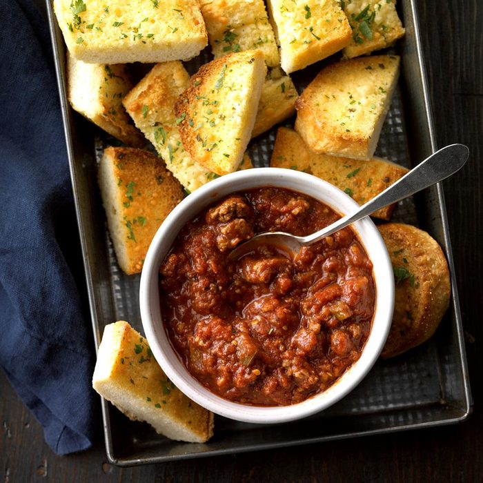 Buttery, cheesy and deeply savory, this pull-apart cheese bread only gets better if you serve it with marinara sauce for dipping. You can dress it up with any cheese, too, like cheddar or Gruyere.