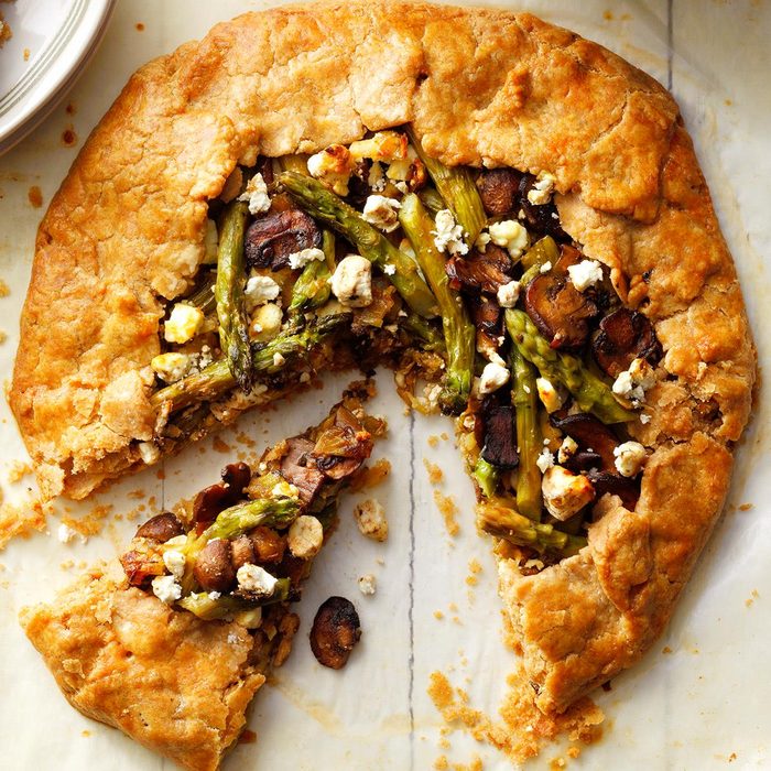 This asparagus galette could be an appetizer or a side dish, or you could top it with an egg and serve it as an entree. While I prefer to make my own whole wheat crust to add a nutty flavor, you could use a refrigerated crust instead. Cooking all vegetables before assembling the galette adds flavor and expels most of the moisture, so the crust gets crispy in the oven. If you want to save time, use caramelized onion jam instead of caramelizing the leeks. —Kellyn Kemmerer, Baltimore, Maryland