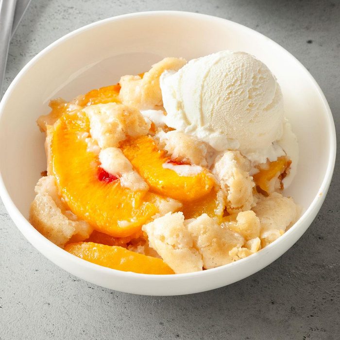 One of my favorite things about cobblers is that they’re supposed to look rustic, so there’s no need to stress or fret over the presentation. All you have to worry about is the flavor. With a big scoop of vanilla ice cream, this peach cobbler recipe certainly delivers.