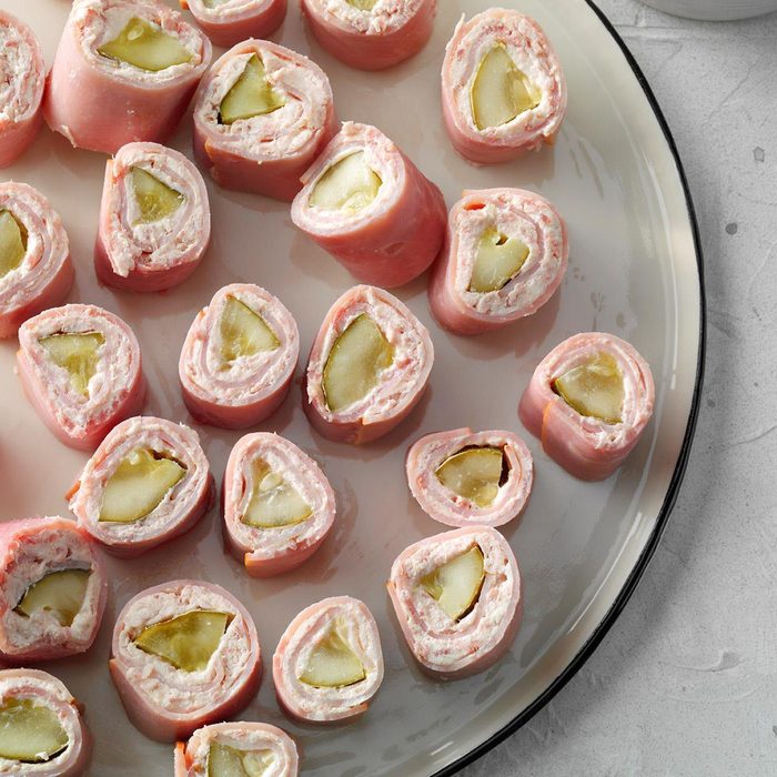 My mom introduced me to this ham pickle pinwheels appetizer a number of years ago, and I’ve been making them for parties ever since. They are easy to make and are always well received by guests. —Gloria Jarrett, Loveland, Ohio