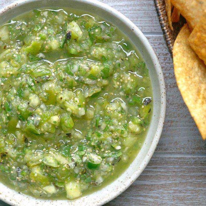 From the Recipe Creator: This flavorful salsa verde is delicious with tortilla chips, but it's also great served on tacos and grilled meats. —Taste of Home Test Kitchen