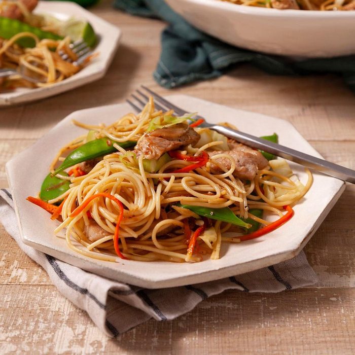 A dear Filipino friend gave me a pork pancit recipe so tempting, we never have leftovers. Try it with meats like chicken, sausage or Spam. —Priscilla Gilbert, Indian Harbour Beach, Florida