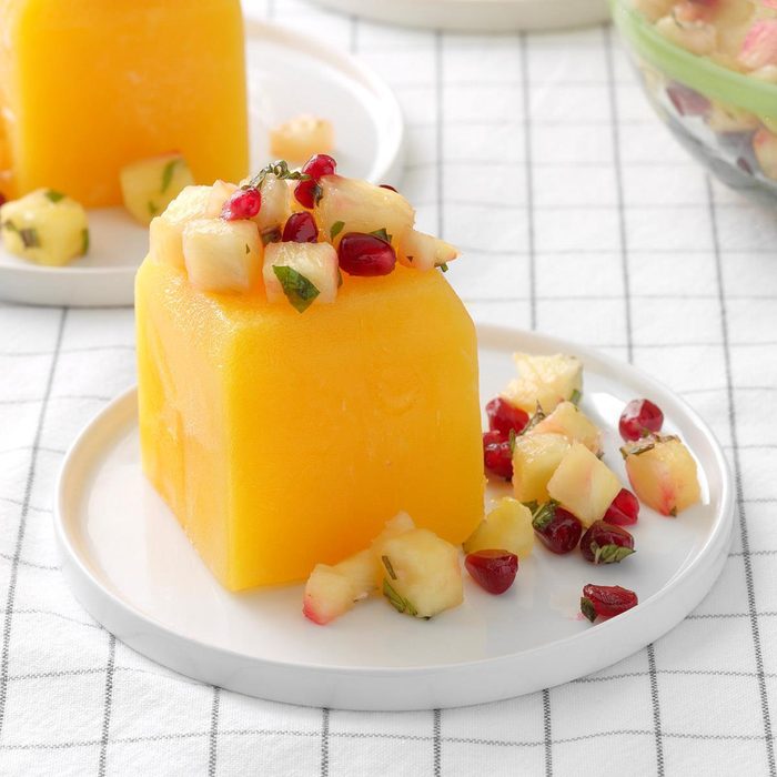 The glorious colors of the fruit make this a festive salad. Slightly sweet and chilled, it makes a nice accompaniment to a grilled entree. —Marlon Kirst, Troy, Michigan