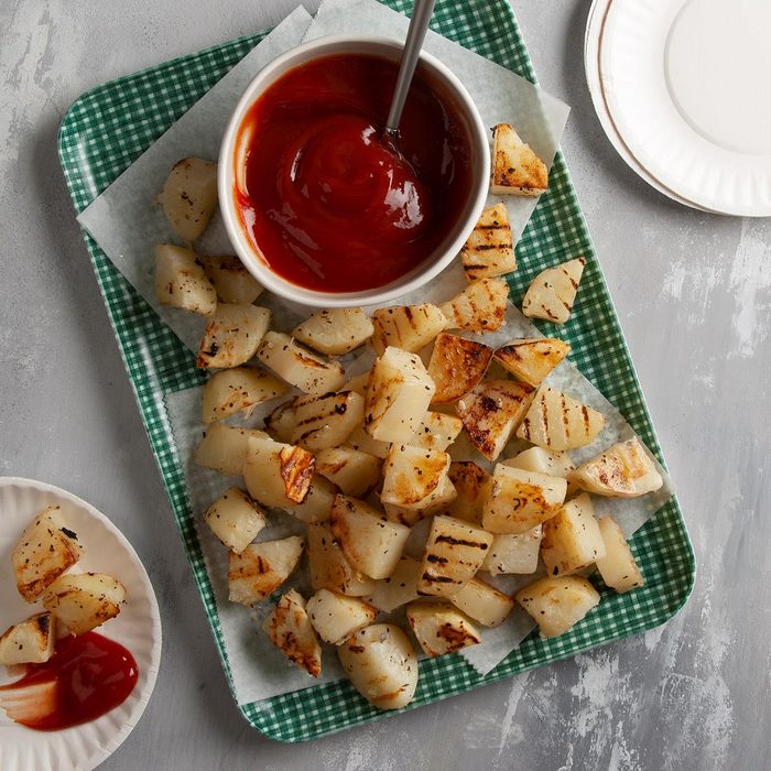 For easy cleanup, we love to grill in foil packets. Potatoes cook nicely with this method. Try Yukon golds, waxy red potatoes or sweet potatoes.