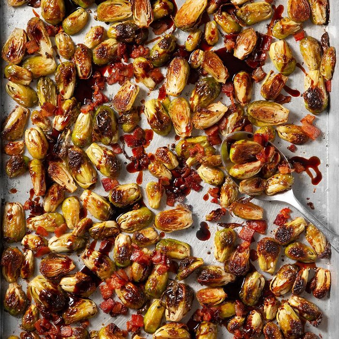 There are lots of ways to personalize this roasted Brussels sprouts with bacon recipe to your own tastes, but it all starts with perfectly roasted sprouts. Oven temps vary, so keep an eye on them to make sure they get crisp but don’t burn. —Karen Keefe, Phoenix, Arizona