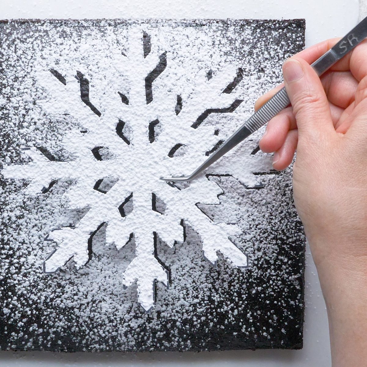 You don’t need to break out the piping bags to create a pretty finish on cakes and brownies. With just a sheet of card stock—or even a doily—you can create an impactful visual. Simply trace and cut out the design of your choice. Press this onto the top of your bake and then dust with powdered sugar. Carefully remove your template to reveal a gorgeous finish.