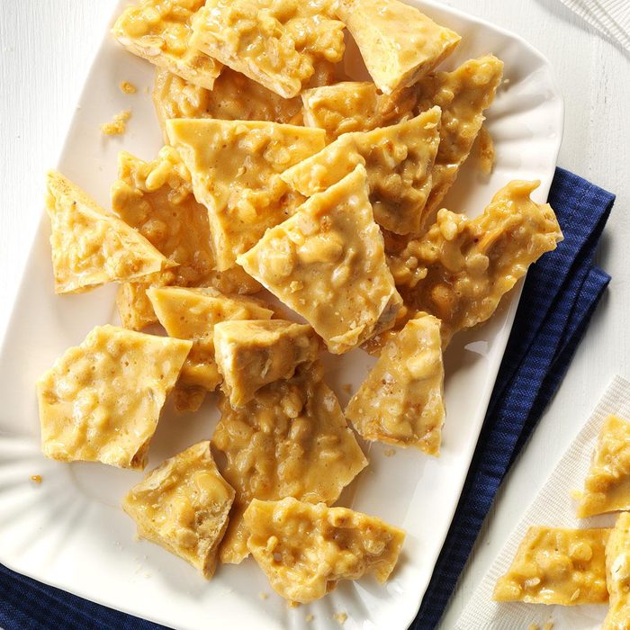 From the Recipe Creator: I love a soft brittle because the texture is wonderful and different. The flavors in this one remind me of a favorite candy bar. —JoAnn Belack, Bradenton, Florida