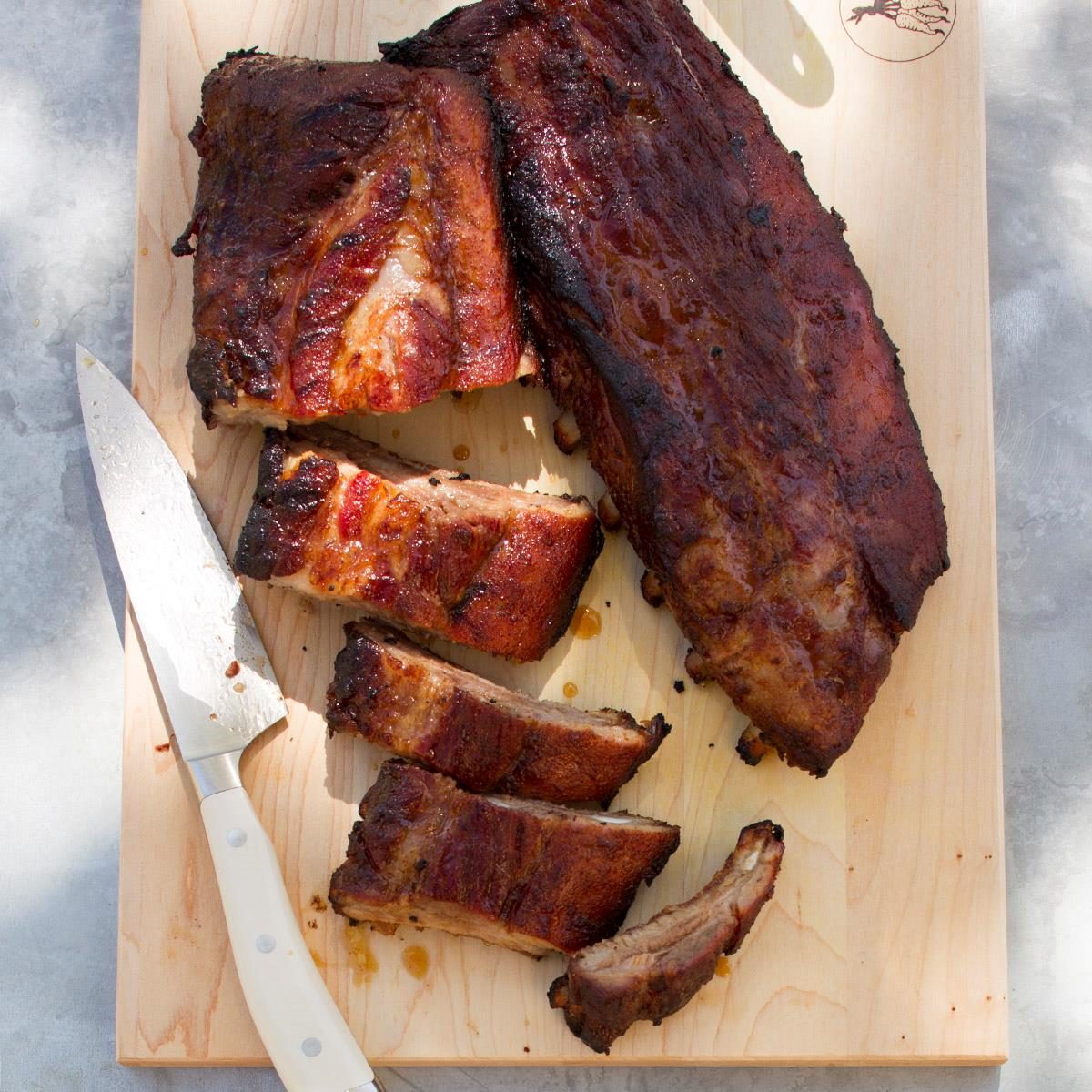 Ribs are a barbecue essential. To test for doneness, twist a rib bone just a little bit; you should feel it give easily but not fall apart from the meat. If the meat falls off the bone, your ribs are overcooked.