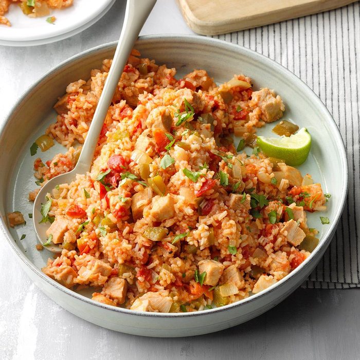 This zippy southwest chicken casserole is great for your next gathering. With quick-made rice, you can have dinner on the table in under an hour. Feel free to sub out the pork for rotisserie chicken.