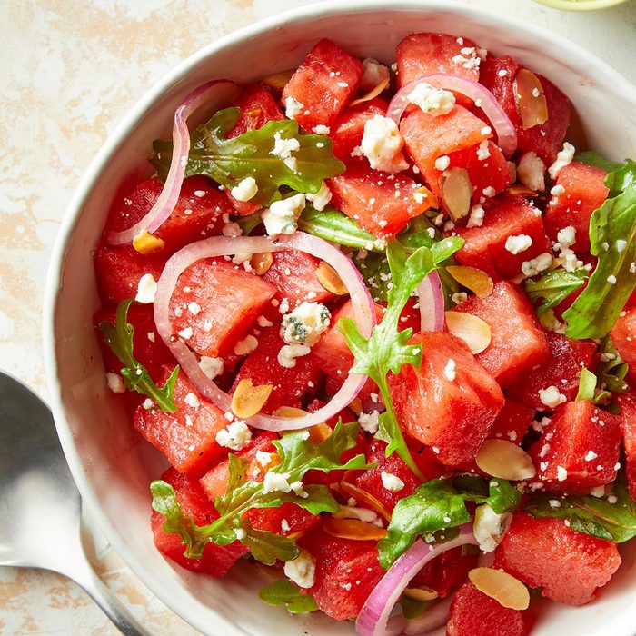 When it’s too hot to eat inside, I head out to the patio. Shred some rotisserie chicken and toss with mango, watermelon and grapes for an ooh-ahh healthy chicken salad. —Barbara Spitzer, Lodi, California