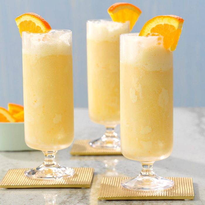 This is a “grown up” creamsicle beverage. For the kiddos, make a non-alcoholic version with non-alcoholic sparkling wine, sparkling cider, or ginger ale. —Deirdre Cox, Kansas City, Missouri