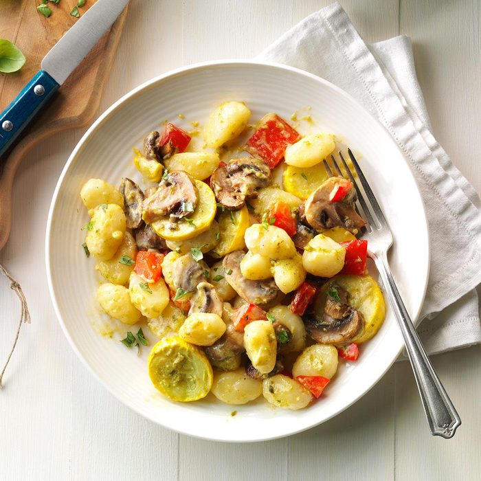 When we go meatless, we toss gnocchi (my husband's favorite) with veggies and a dab of pesto. I use zucchini in this, too. —Elisabeth Larsen, Pleasant Grove, Utah