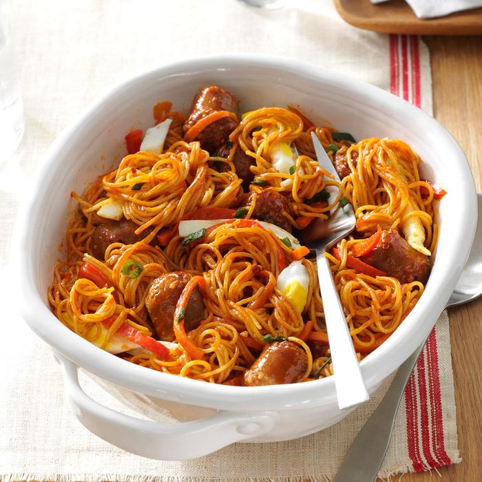 When we hosted a student from South Korea, she shared some of her favorite Korean dishes. We especially like bibimbap. I created a variation on the dish with Italian sausage. —Michal Riege, Cedarburg, Wisconsin