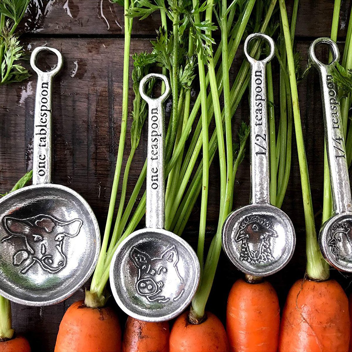 This vintage-inspired farm-to-table measuring spoon set is made in the U.S., with American pewter and hand cast by local artisans in Oregon. With handles stamped by size, each spoon reflects the farm to table motif with imprints of a cow, pig, sheep and hen. Bring those farm fresh feels straight to the table with these farmhouse dessert recipes.