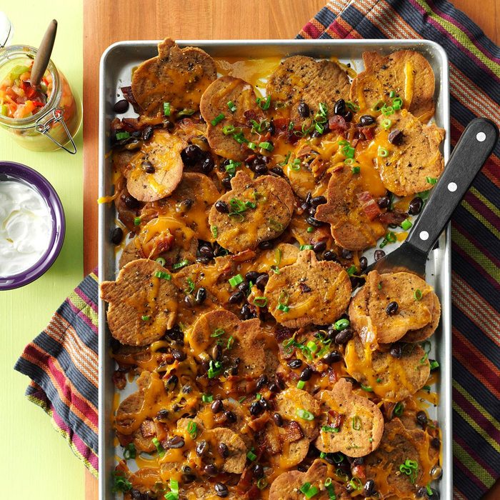 From the Recipe Creator: This is a “dash in the pan” dish that’s always a hit. The spicy nachos have plenty of chicken and two kinds of beans, so they make a filling snack. —Karen Horning, Rockford, Illinois