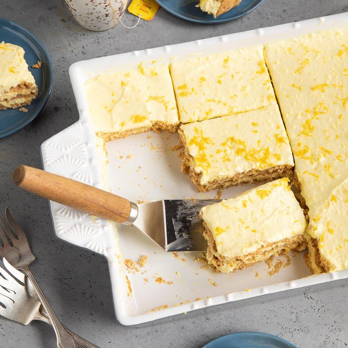 As refreshing as it is easy to make, this lemon icebox cake will become a family favorite. Using grated lemon zest in addition to lemon pudding mix gives it a bright lemon flavor. —Taste of Home Test Kitchen, Milwaukee, Wisconsin