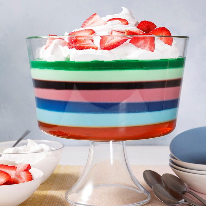 Here's an eye-catching salad that my mother makes for Christmas dinner each year. You can choose different flavors to make other color combinations for specific holidays or other gatherings. —Jan Hemness, Stockton, Missouri