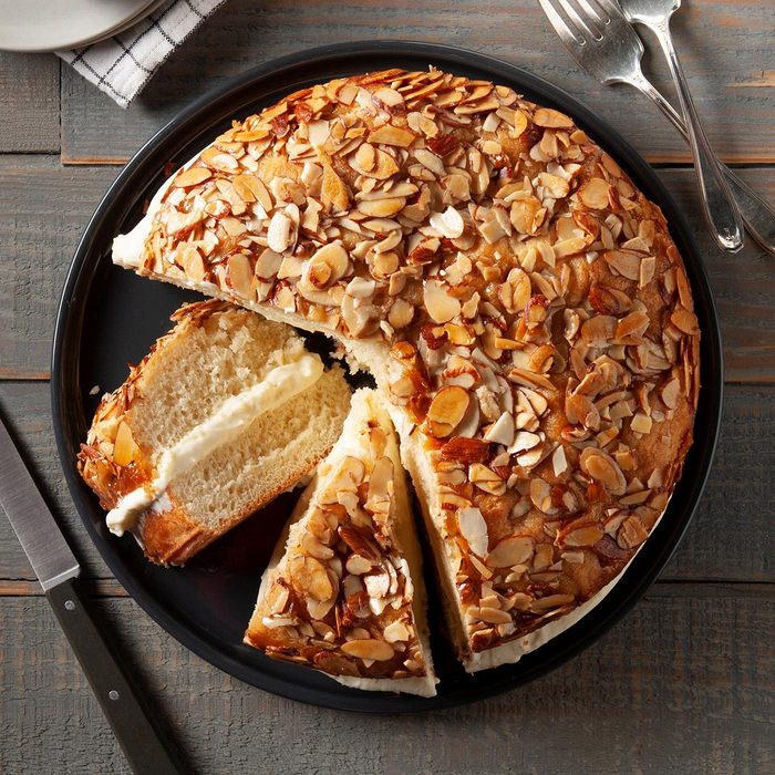 This bee sting cake (aka bienenstich) may look daunting, but it’s well worth the effort. Take each step at a time, and you’ll be surprised how easy it is to make. —Taste of Home Test Kitchen
