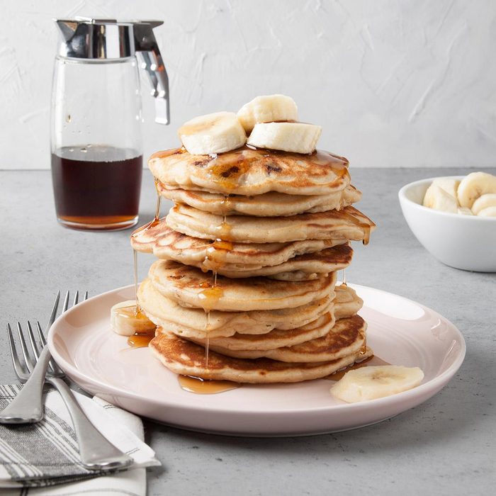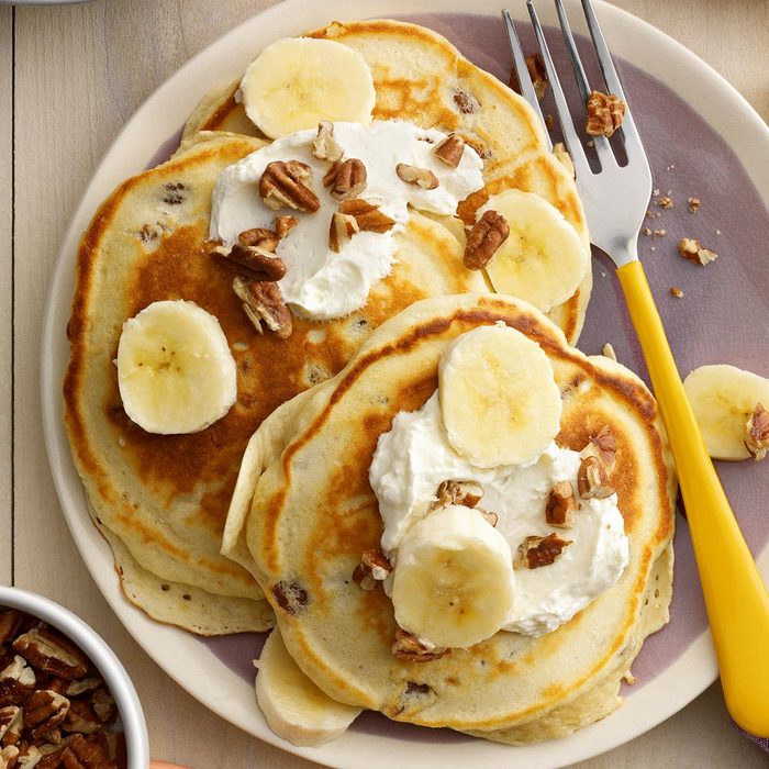 In our house, we sprinkle these whole wheat pancakes with a little confectioners' sugar because the banana is so sweet that you don't need syrup. —Patricia Swart, Galloway, New Jersey