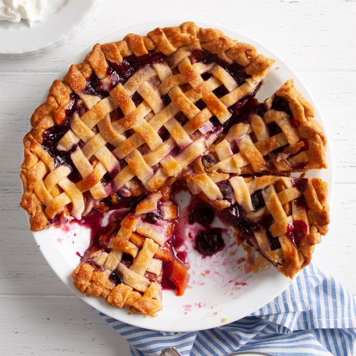 From the Recipe Creator: As a young girl, I dreamed of being able to make pies like my mother. Her rolling pin, which I inherited, is 2 feet long and 8 inches wide! In fact, this is Mom's recipe, although I substituted cherries for the strawberries in her version. I first made this pie for a church gathering 20 years ago, and everyone's looked for it at every potluck since! —Eunice Hurt, Murfreesboro, Tennessee