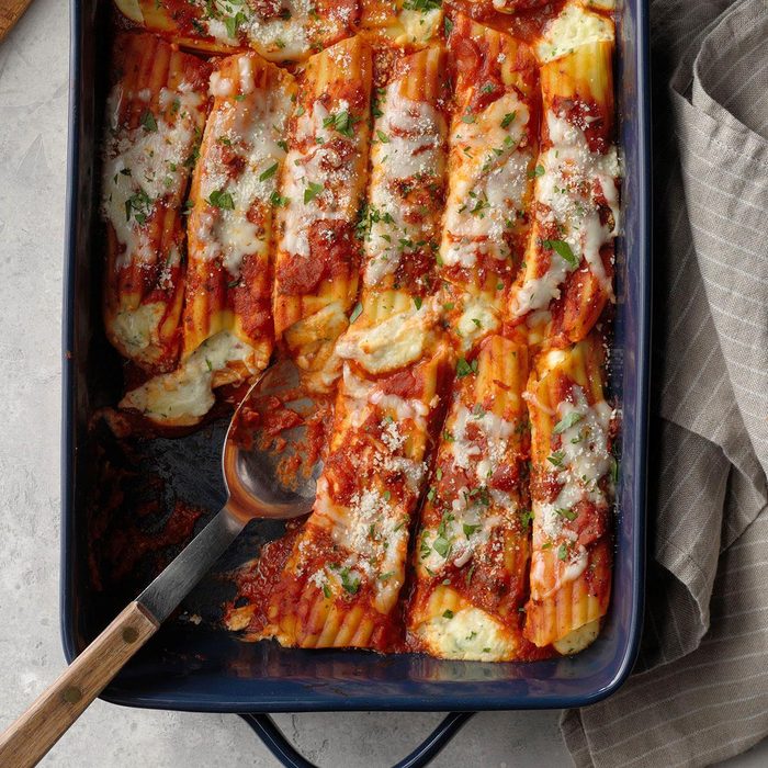 When I invite people to dinner, many have started requesting this pasta bake ahead of time because it's that good. Plus, the manicotti is stuffed before it's cooked, making it even more convenient. —Christy Freeman, Central Point, Oregon