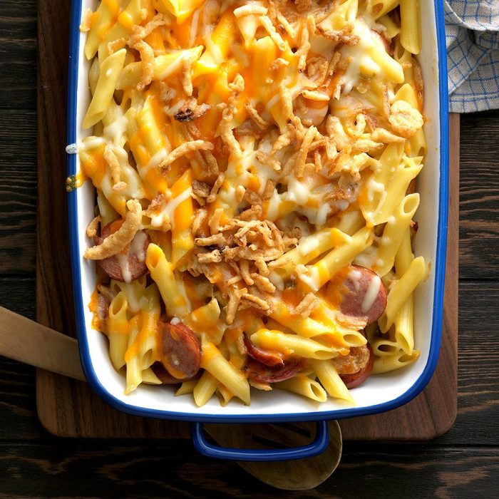 This must-try pasta al forno tastes so good when it’s hot and bubbly from the oven. The cheddar french-fried onions lend a cheesy, crunchy touch. —Margaret Wilson, Hemet, California