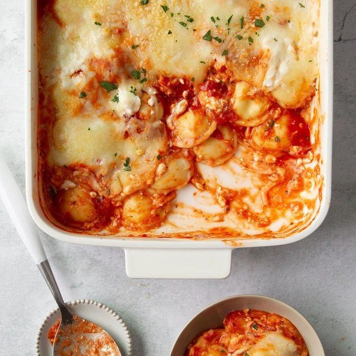 I based this recipe on a dish my husband likes to order when we go out for Italian food. Not only does he love it, my one-year-old daughter does, too. She’ll grab a whole ravioli and eat it! —Jennifer Berger, Eau Claire, Wisconsin