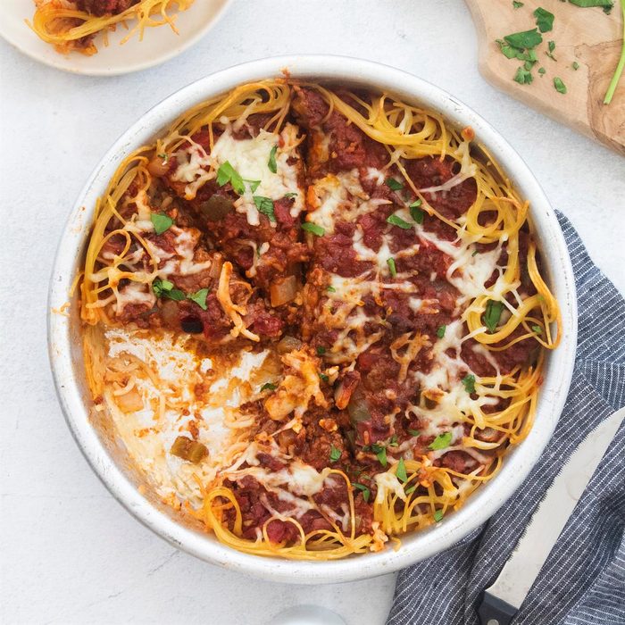 This baked spaghetti is my grandchildren’s most-loved dish. It feels like such a special dinner and is so cozy for winter. —Louise Miller, Westminster, Maryland