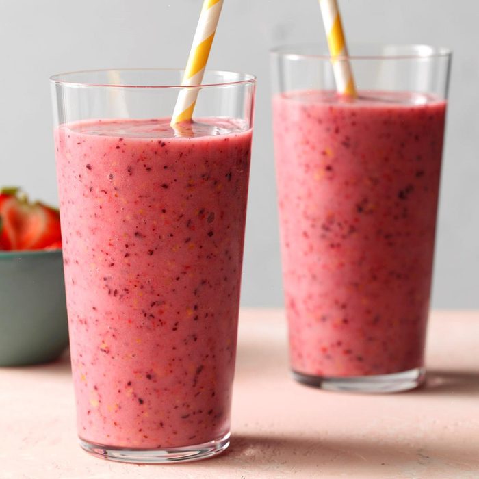 This fruity, healthy smoothie is a big hit with kids and adults alike because it tastes like a treat and still delivers the vitamins. The recipe is easy to increase based on the number of people you’ll be serving. —Hillary Engler, Cape Girardeau, Missouri