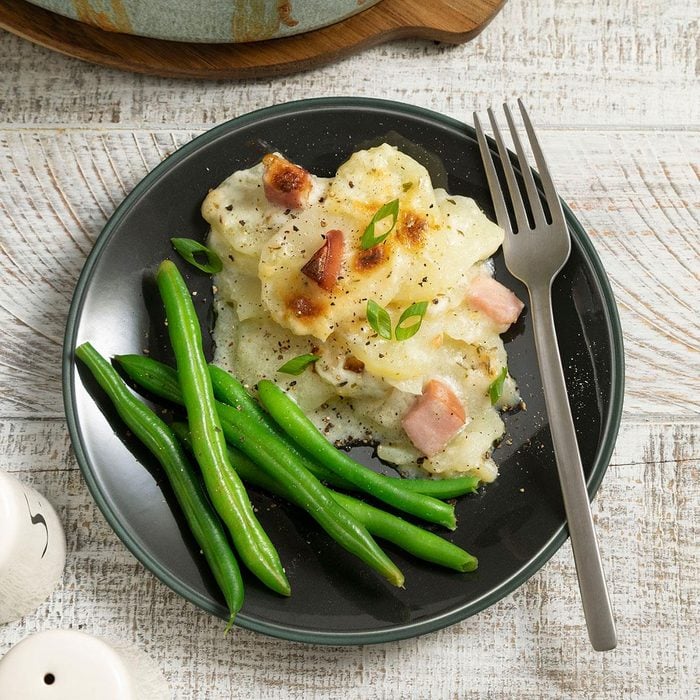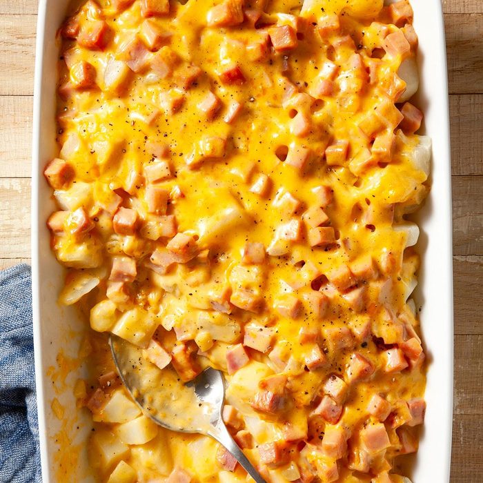 This dish is a real crowd-pleaser with its smooth sauce, chunks of ham and potato slices. I always enjoyed it when Mother made it for us. I added parsley and thyme, and now my husband and five children request it all the time. —Wendy Rhoades, Yacolt, Washington