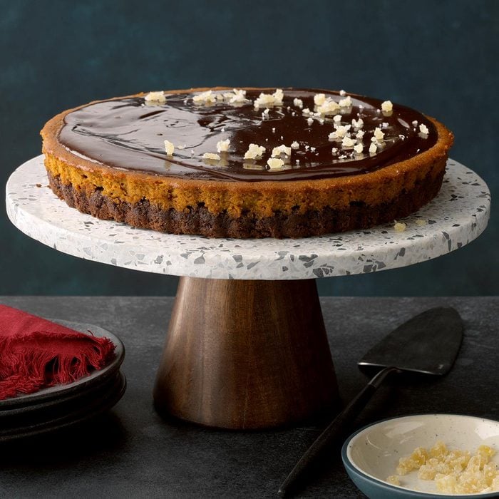 From the Recipe Creator: I love the flavor combination of spiced pumpkin and chocolate, which inspired me to create this chocolate pumpkin tart. Sometimes I like to sprinkle chopped crystallized ginger over the chocolate ganache for extra flavor and texture. —Bernice Janowski, Stevens Point, Wisconsin