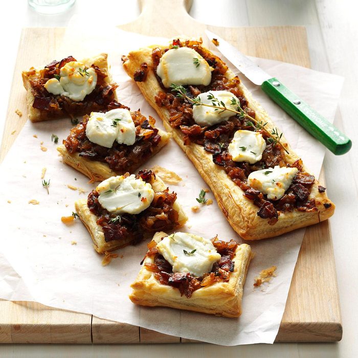 A flaky puff pastry crust holds sweet caramelized onions and creamy goat cheese for an easy yet upscale appetizer. The recipe is a must on all our entertaining menus. —Heidi Ellis, Monument, Colorado