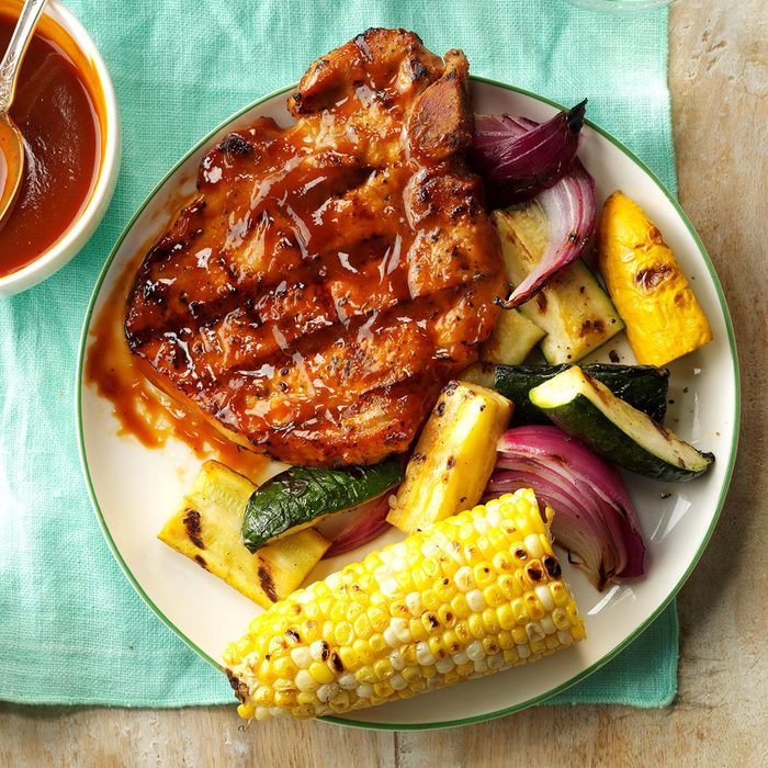 This recipe is my favorite out of all my grilled pork chop recipes. I start preparing this entree the night before I plan to grill it.—Erica Svejda, Janesville, Wisconsin
