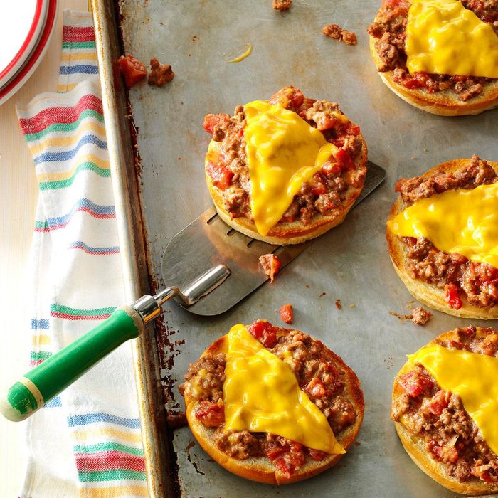 When you have these fun-to-make mini pizzas, it's no challenge finding lunch fare that the kids enjoy. Plus they pack nicely in sandwich bags and travel well, so there's no mess. —Rhonda Cliett, Belton, Texas