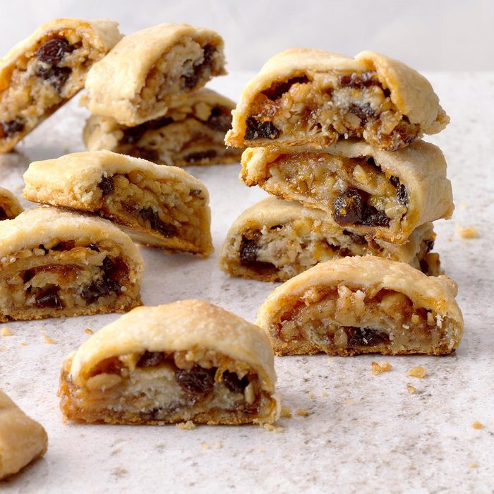Rugelach is a classic addition to holiday trays. The flaky, buttery pastry slices encase a spiced fruit and walnut filling. —Laurie Klett, Hamilton, Michigan