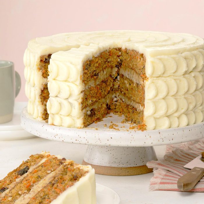 My sister gave me this recipe for what she calls "the ultimate carrot cake," and it really lives up to the name. When people taste it, they're bowled over by the tender, not-too-sweet cake and unexpected pecan filling. —Linda Van Holland, Innisfail, Alberta