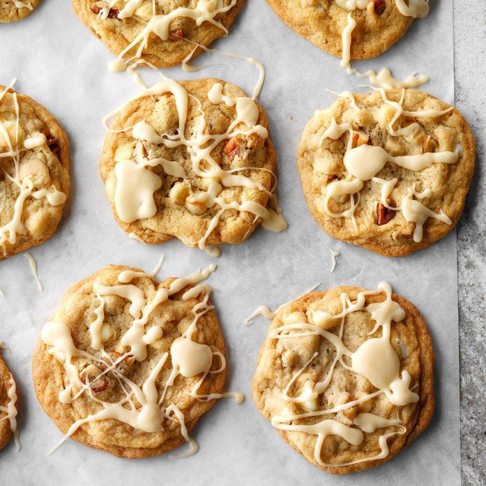 From the Recipe Creator: These white chocolate-drizzled cookies are a cinch to make, so I’m happy to whip up a batch any time. My neighbors always look forward to them! —Ginger Chatfield, Muscatine, Iowa