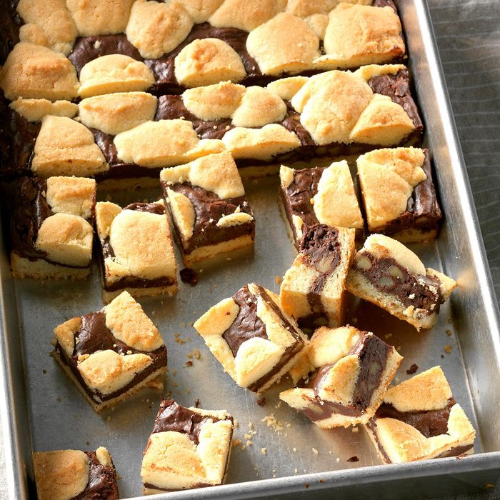 When my husband and our three sons sit down to dinner, they ask, "What's for dessert?" I have a happy group of guys when I report that these rich bars are on the menu. They're chockfull of yummy ingredients. —Lee Ann Karnowski, Stevens Point, Wisconsin