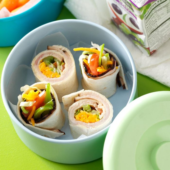 Here's a cool idea that's ready to gobble up in no time. It's a terrific use for deli turkey. Just add lettuce, tomato, green pepper, shredded cheese and ranch dressing for a flavorful blend. —Taste of Home Test Kitchen