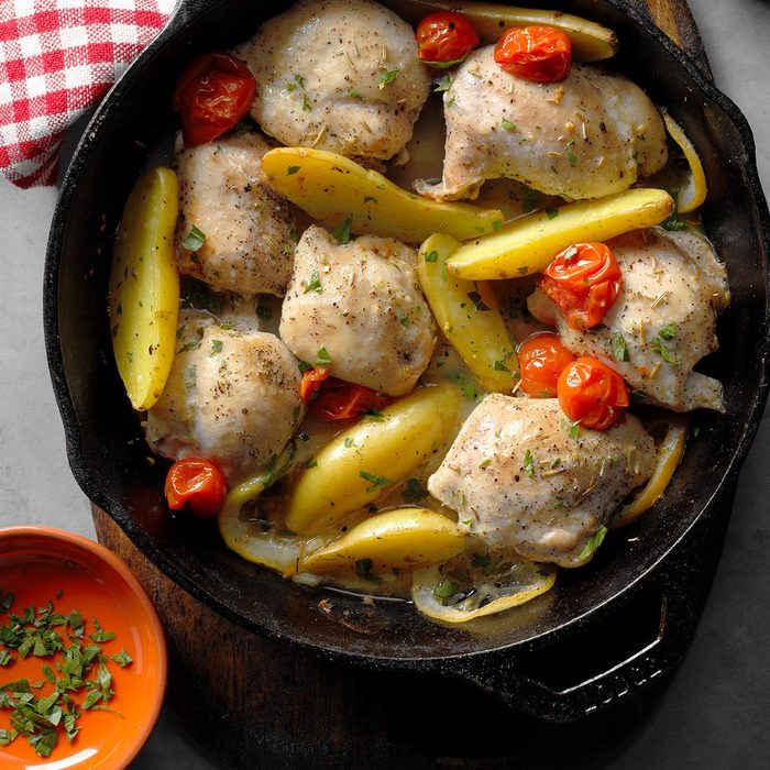 My Greek neighbors made this chicken frequently, and I couldn’t get enough of it. If you like garlic, you’ll love this recipe. —Denise Hollebeke, Penhold, Alberta
