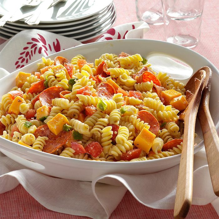 As far as cold pasta salad recipes go, this is one of the best. Not only does it travel well to get-togethers such as picnics or tailgate parties, but people absolutely love it when it gets there. —Jeanette Krembas, Laguna Niguel, California