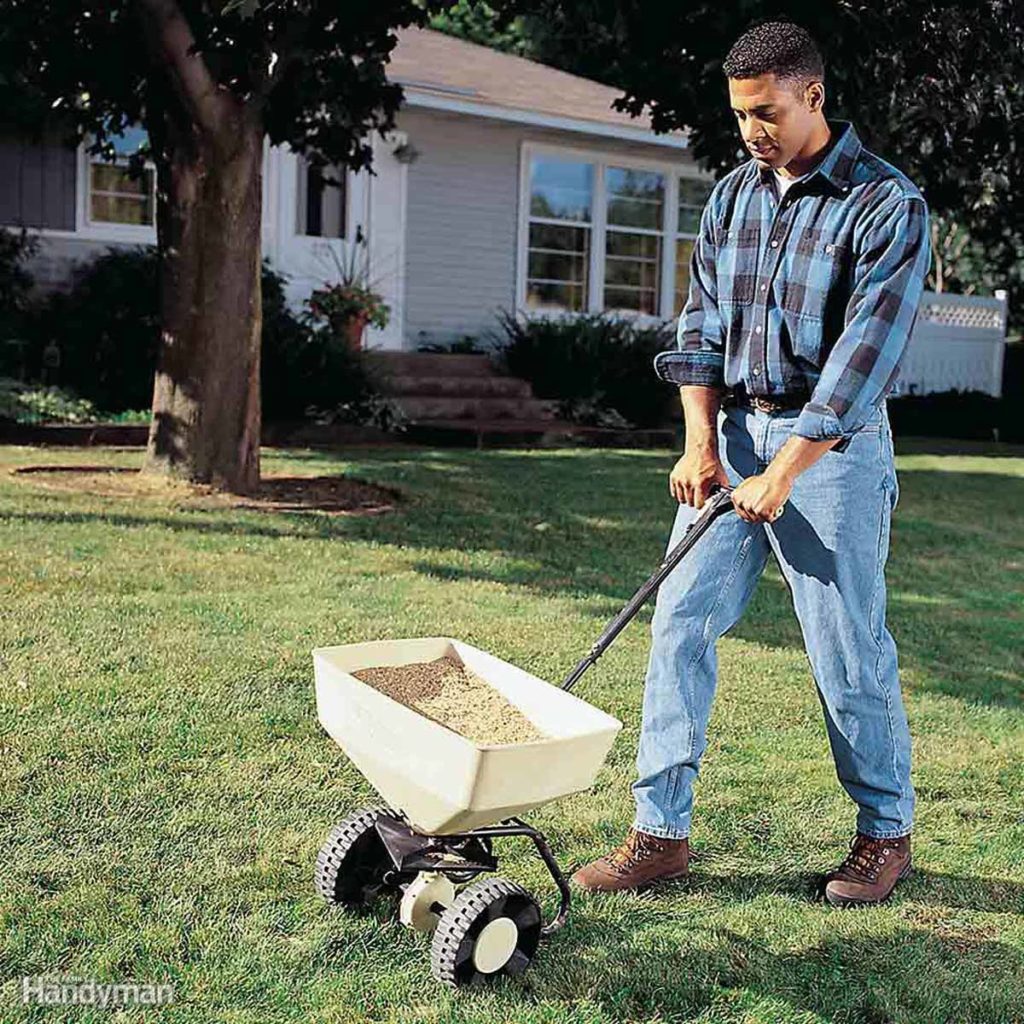 To apply compost, spread it over your lawn with a shovel, aiming for a layer 1/4- to 1/2-in. thick. Then work it into the turf with a rake. It’s best to do this after aerating. Most garden centers sell bagged compost. But to cover an entire yard, you’re better off buying in bulk. Don’t worry about buying too much—any leftovers will benefit your garden and shrub beds. By the way, here’s how to start composting at home.