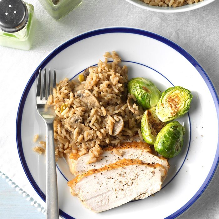 Simple rice pilaf is a lifesaver when you are hosting Thanksgiving. Just place the ingredients in the slow cooker and forget about it until it’s time to serve. —Kathleen Hedger, Godfrey, Illinois