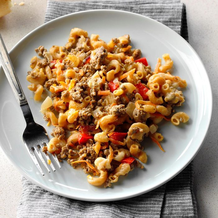 This is a nice little twist on a classic dish. If you love cheese, feel free to add more, and green peppers are a great taste if you want some vegetables. —Barb Kondolf, Hamlin, New York