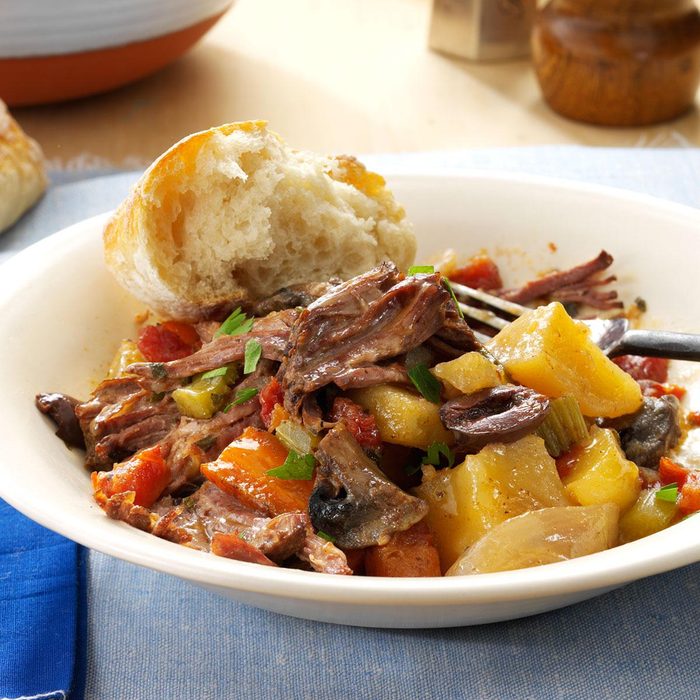 With the help of a slow cooker, you can prepare a down-home dinner any day of the week, not just on Sundays. The roast turns out tender and savory every time. —Brandy Schaefer, Glen Carbon, Illinois